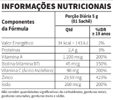 Sua fórmula de composição em pó conta com bioativos, vitaminas e minerais que estimulam a melhora do organismo, ao passo que promove uma melhor absorção de nutrientes, manutenção de cartilagens, unhas, cabelos e da pele, além de aliviar e precaver de dores nas articulações. Previne o desenvolvimento de doenças na função articular, combate o envelhecimento da pele, reduzindo rugas e linhas de expressão e fortalece unhas e cabelos. Não contém glúten.