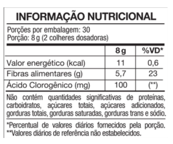 Fibras (psyllium), ácido clorogênico (extrato de café verde), sabor limão, e outros ingredientes para sabor.
