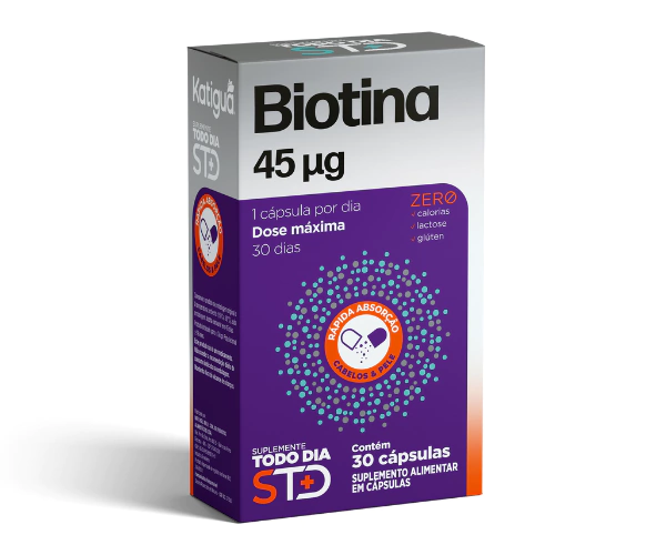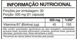 A Biotina 30 Cápsulas Katiguá contém a dose máxima de biotina (vitamina B7) permitida pela ANVISA.