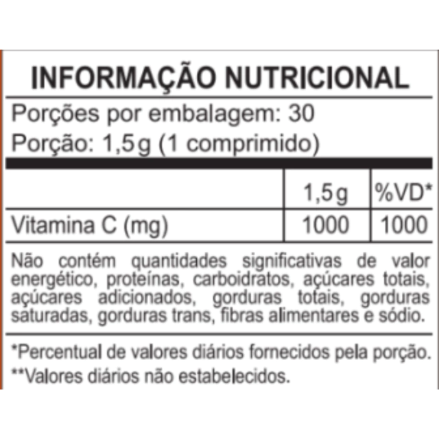Vitamina C, Estearato de Magnésio e Dióxido de Silício. Composição da cápsula: Gelatina, Glicerina, Corante Vermelho Bordeaux, Dióxido de Titânio e Água Purificada.